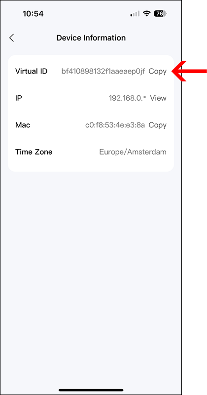 - Hier zie je het apparaat-ID / Virtual-ID.