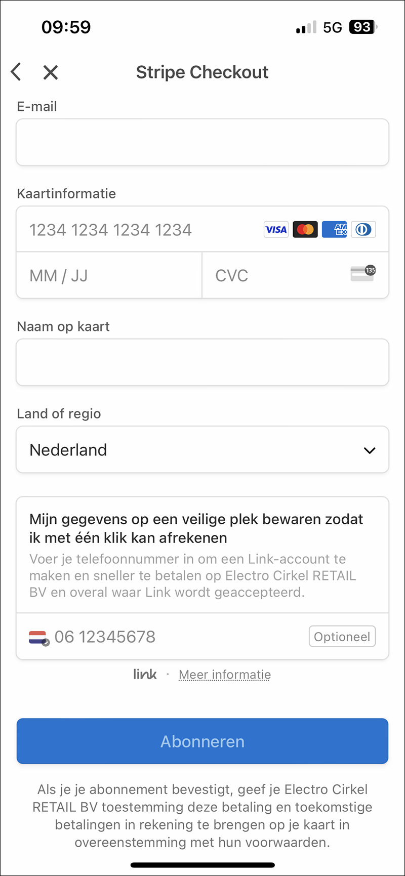 Om een Cloud Storage-abonnement af te sluiten, is een creditcard vereist. Het gebruik van een creditcard biedt een handige en veilige manier om deze betalingen te verwerken. Andere betaalmiddelen worden momenteel niet ondersteund.