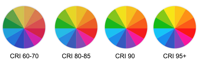 CRI 100 (100%) is de hoogst mogelijke score; alle kleuren worden optimaal weergegeven. Een lagere CRI-waarde geeft aan dat de kleuren minder helder worden weergegeven. Dit komt omdat bij een lagere CRI kleuren doffer worden weergegeven dan ze zijn, zoals te zien is op de afbeelding.